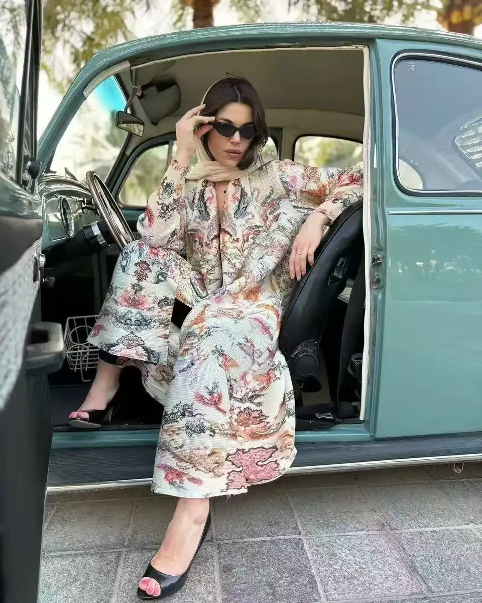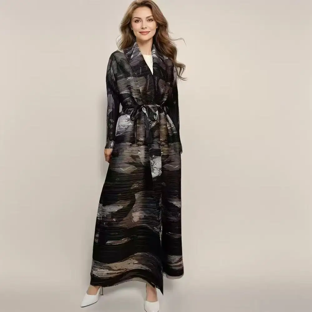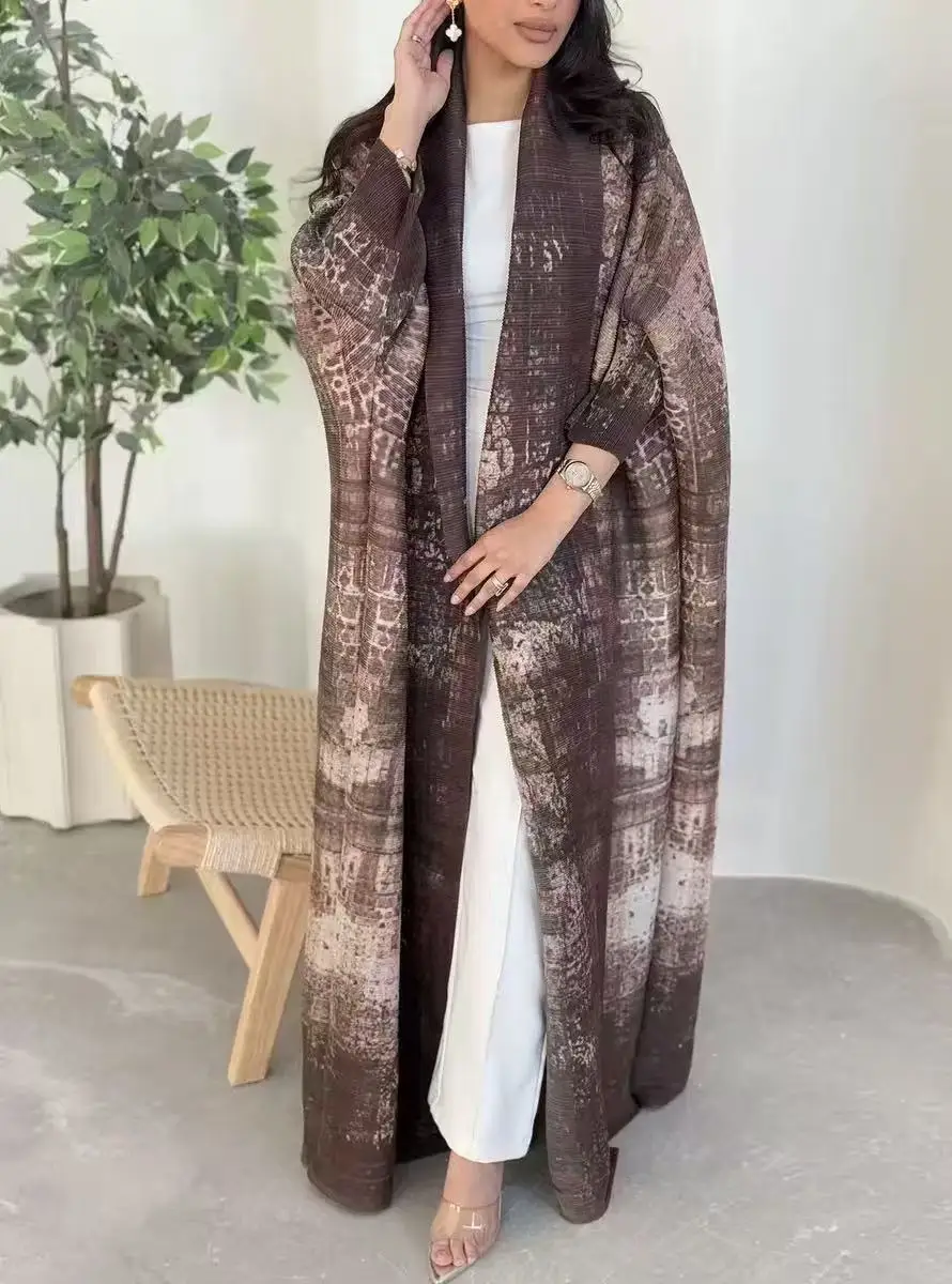 Factory Direct High-quality New Elegant Arab Robe-style Cardigan with Miyaki Pleats Plus Size Traditional Muslim Women's Dress